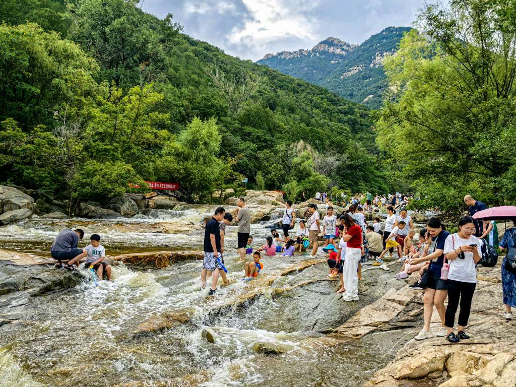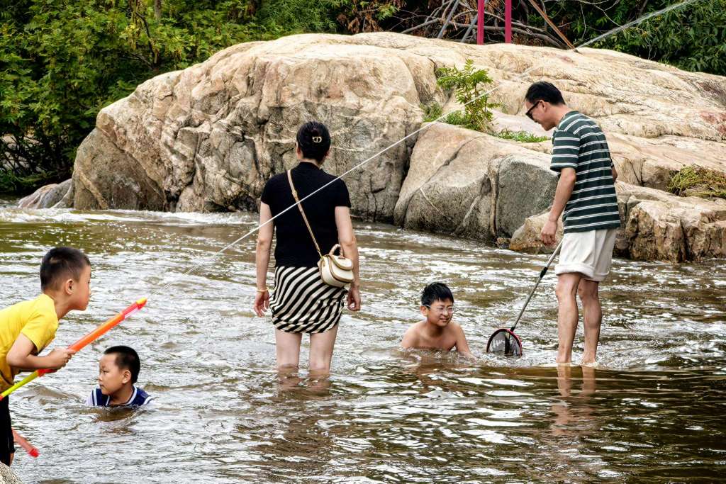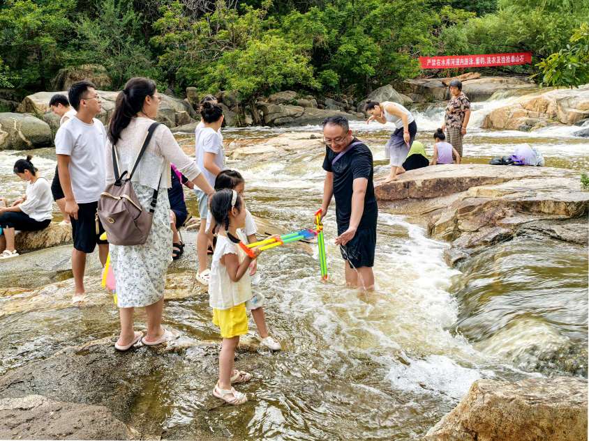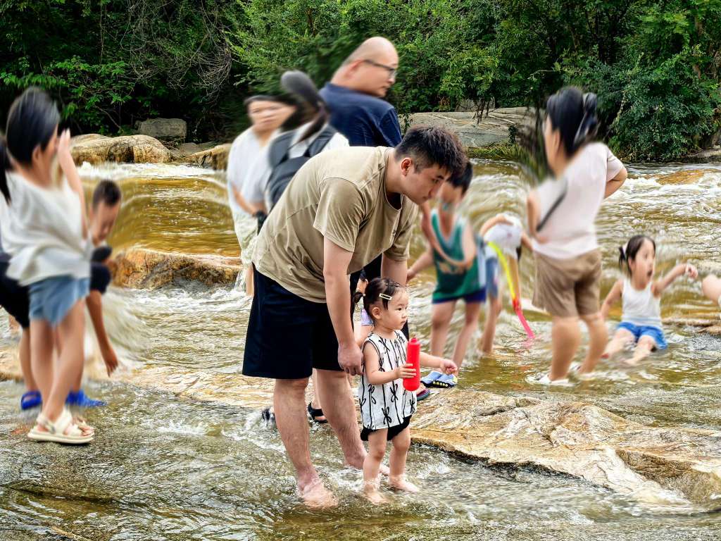 此时,天外村热闹非凡,人们纷纷走出家门,赴这一场雨后之约。孩童们在水中嬉笑打闹,手中的水枪喷涌出欢快的水流,笑声如银铃般清脆,在山谷间久久回荡。大人们有的挽起裤脚,踏入清凉的水中,感受着水流轻抚脚背的惬意;有的则站在一旁,拿着相机,记录下家人朋友此刻的笑颜。